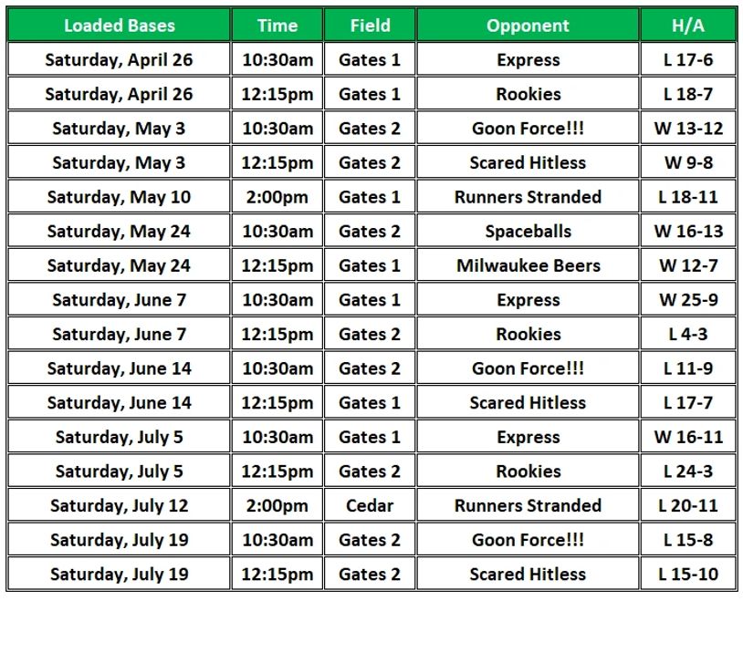 loaded bases schedule & results