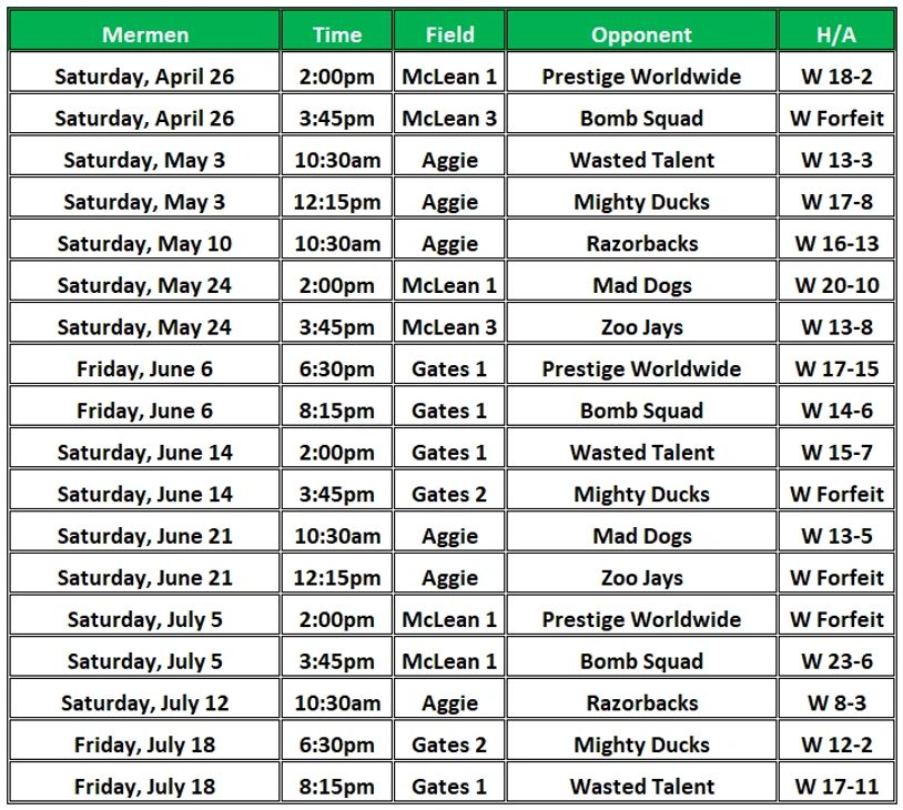 mermen schedule & results