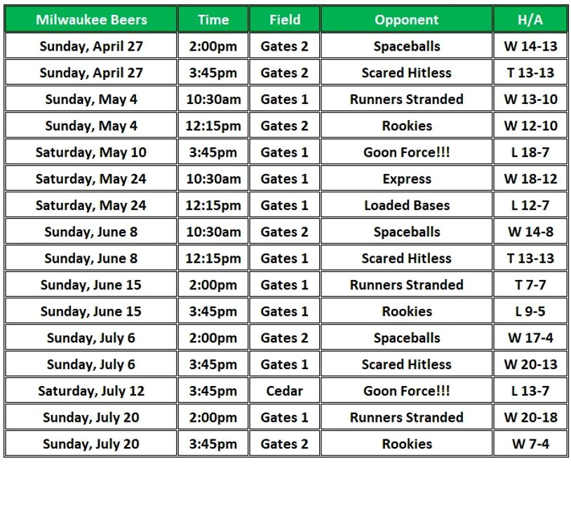 milwaukee beers schedule & results
