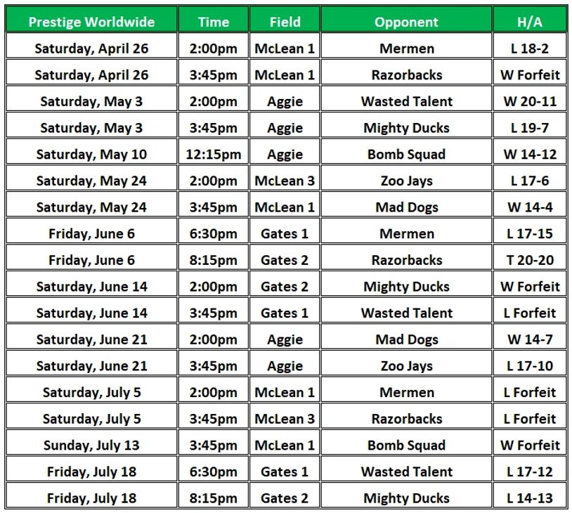 prestige worldwide schedule & results
