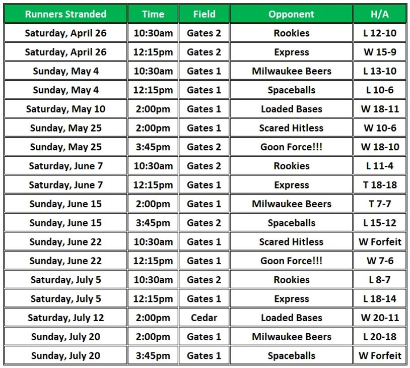 runners stranded schedule & results